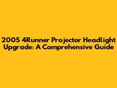 2005 4Runner Projector Headlight Upgrade Guide