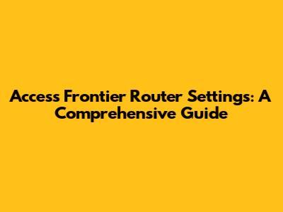 Access Frontier Router Settings: Easy Steps