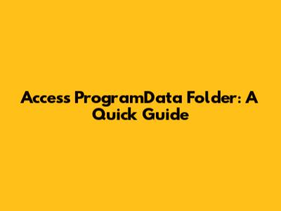 Access ProgramData Folder: A Quick Guide