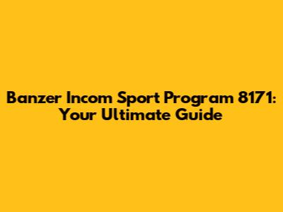 Banzer Incom Sport Program 8171: A Comprehensive Guide