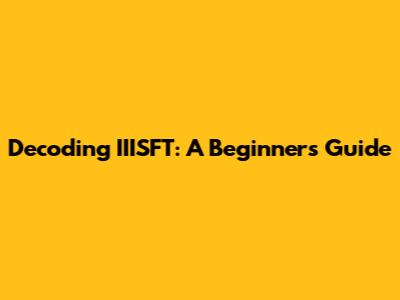 Decoding IIISFT: A Beginner's Guide