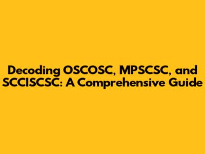 Hey guys! Let's dive into some acronyms that might seem like a jumble of letters at first glance: OSCOSC, MPSCSC, and SCCISCSC. Understanding what these stand for and what they represent can be super helpful, especially if you're involved in certain fields or just curious about their meaning. We'll break down each one, making sure it's all clear and easy to understand. So, grab a coffee (or your drink of choice), and let's get started.
