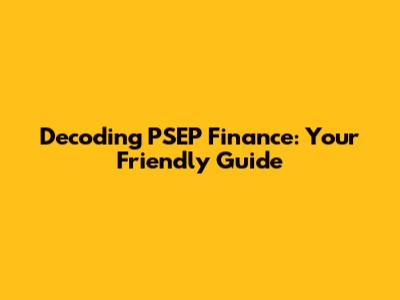 Hey guys! Ever heard of PSEP Finance and felt a little lost in the jargon? Don't worry, you're definitely not alone. It's a world filled with acronyms and complex financial instruments, but trust me, it's not as scary as it seems. This guide is designed to break down PSEP Finance into simple, understandable terms. We'll explore what it is, how it works, and why it matters, all while keeping things friendly and easy to follow. Think of me as your financial buddy, guiding you through the ins and outs. Let's dive in and demystify the world of PSEP Finance together!