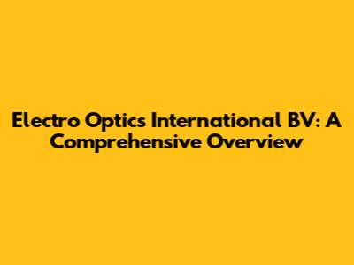 Electro Optics International BV: Everything You Need To Know