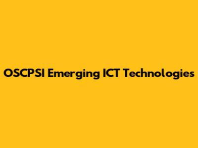 Emerging ICT Technologies: OSCPSI Insights