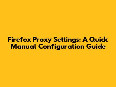 Firefox Proxy Settings: A Quick Manual Configuration Guide