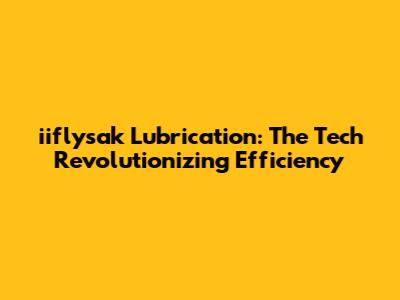 Iiflysak Lubrication: The Tech Revolutionizing Efficiency
