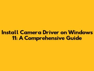 Install Camera Driver On Windows 11: A Comprehensive Guide