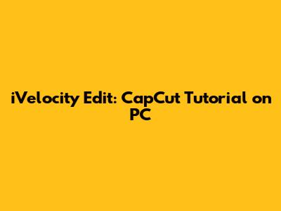 IVelocity Edit: CapCut Tutorial On PC