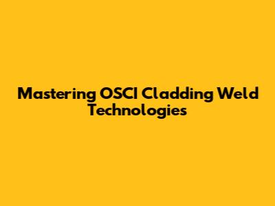 Mastering OSCI Cladding Weld Technologies