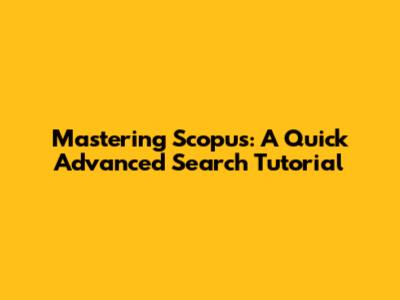 Mastering Scopus: A Quick Advanced Search Tutorial