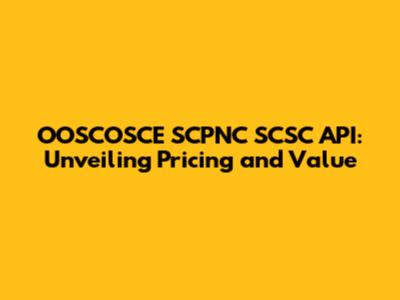 OOSCOSCE SCPNC SCSC API: Unveiling Pricing And Value