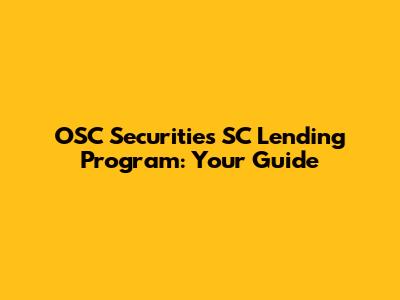 OSC Securities SC Lending Program: Your Guide