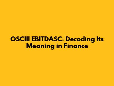 OSCIII EBITDASC: Decoding Its Meaning In Finance