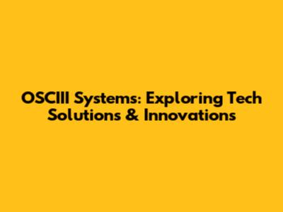 OSCIII Systems: Exploring Tech Solutions & Innovations