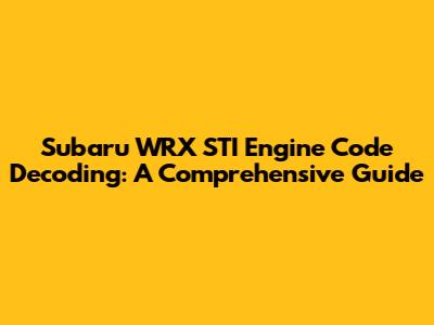 Subaru WRX STI Engine Code Decoding: A Comprehensive Guide