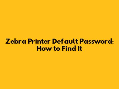 Zebra Printer Default Password: How To Find It